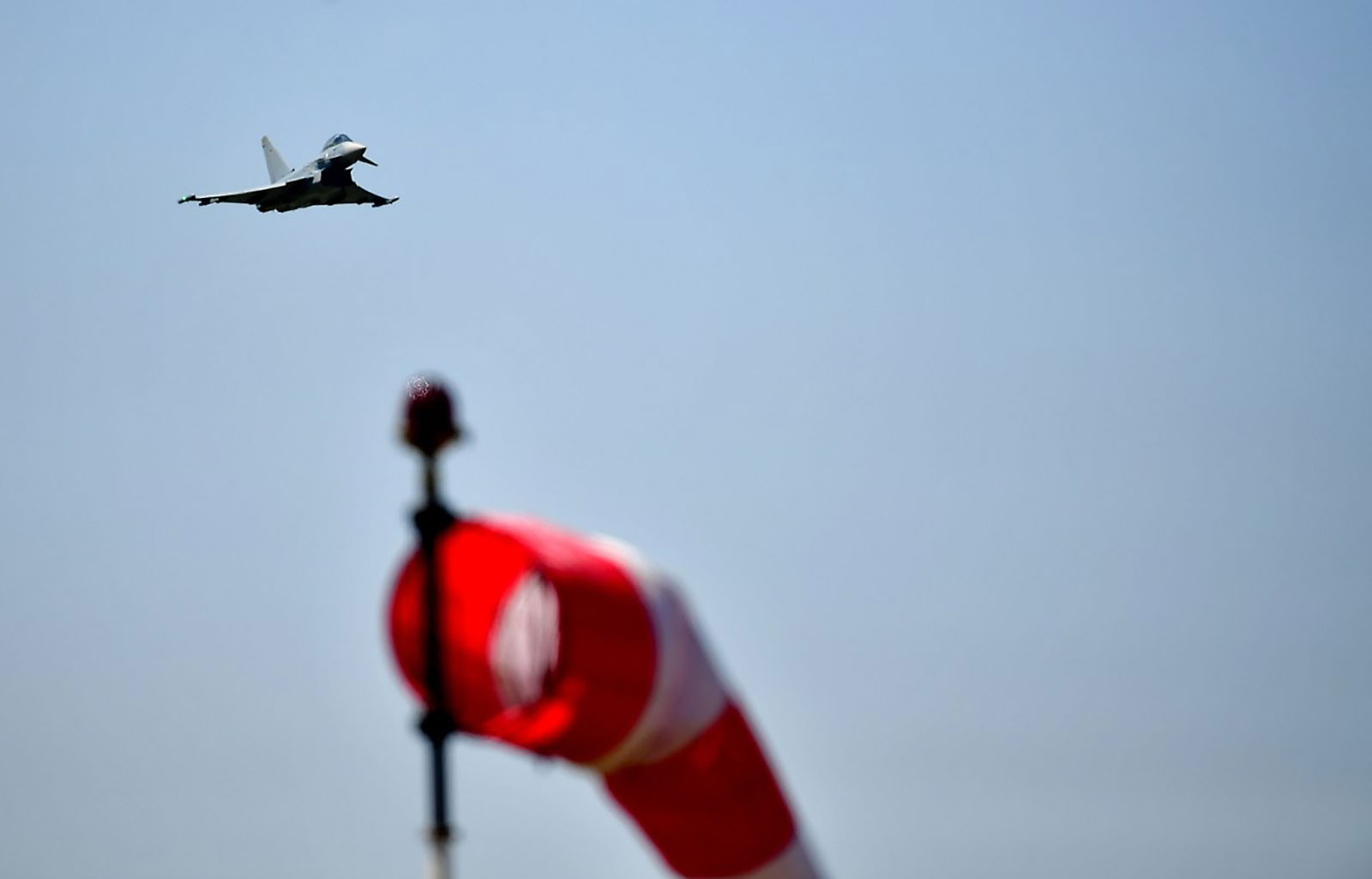 A German Air Force Eurofighter Typhoon jet performs at Fliegerhorst Wunstorf to take part in an open house day of the Bundeswehr on June 7, 2018, in Wunstorf, Germany. (Photo by Alexander Koerner/Getty Images)