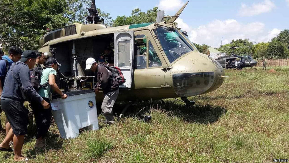 The Philippine Air Force (PAF) Bell UH-1H Huey delivered election paraphernali. (Photo by PAF-TOG 6)